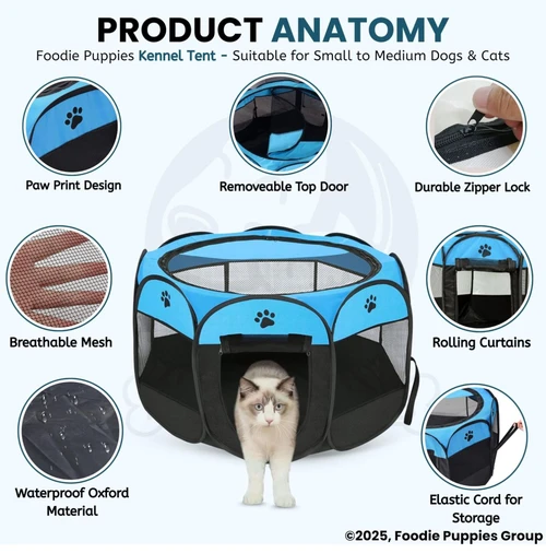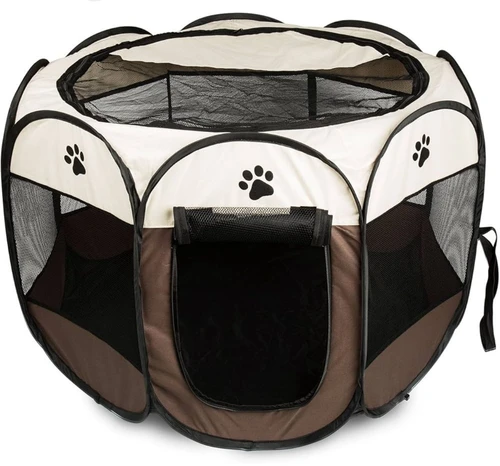 خيمة لعب محمول وقابل للطي للحيوانات الأليفة، مصمم للكلاب والقطط، ويتميز بألواح شبكية للتهوية