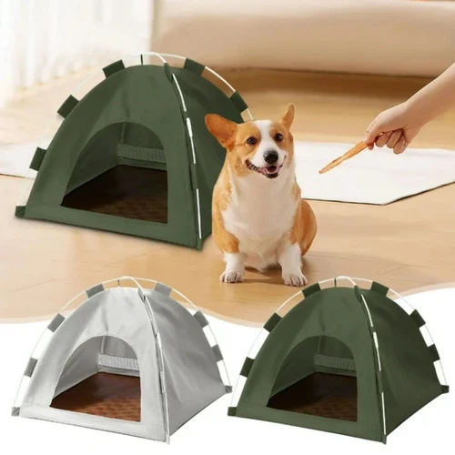 خيمة محمولة مقاومة للماء للحيوانات الأليفة، مناسبة للقطط والكلاب الصغيرة، ومتوفرة بالألوان الأخضر والرمادي والبيج