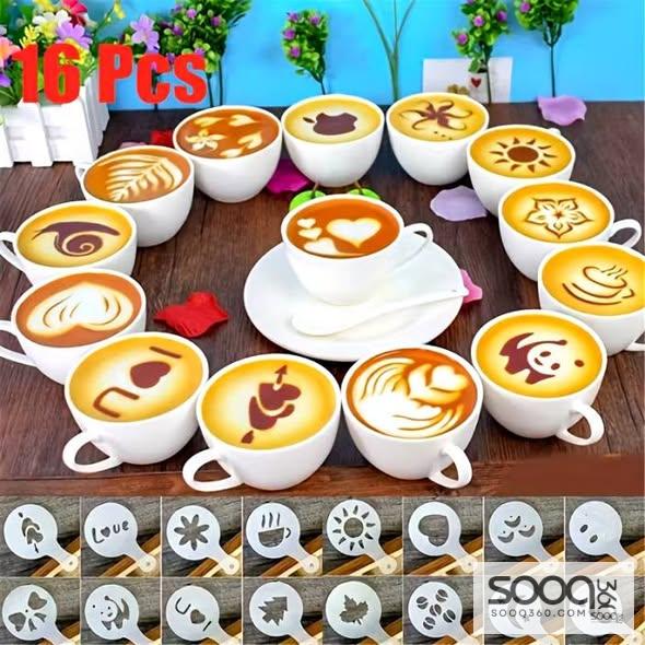 مع مجموعة قوالب تزيين القهوة (16 قطعة) ستجعل كل فنجان قهوة لوحة فنية 🎨