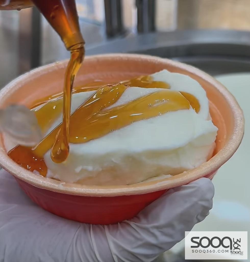 قشطة لذيذة تعود بك الى زمن السبعينات مع العسل المكرمل ويمكن إضافة جوز الهند أو المكسرات حسب الرغبة اطلبها الان ولا تتردد ..