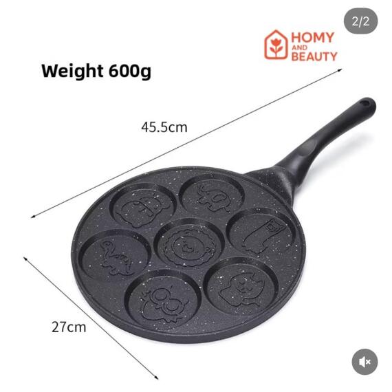 مقلاة عملية مصممة لتحضير بانكيك مثالي ومتناسق في كل مرة، تحتوي على عدة فتحات بأشكال جميلة تساعدك على إعداد بانكيك مميز للأطفال والكبار. مصنوعة من مادة عالية الجودة بسطح غير لاصق يضمن طهيًا متساويًا وسهولة في الاستخدام والتنظيف.