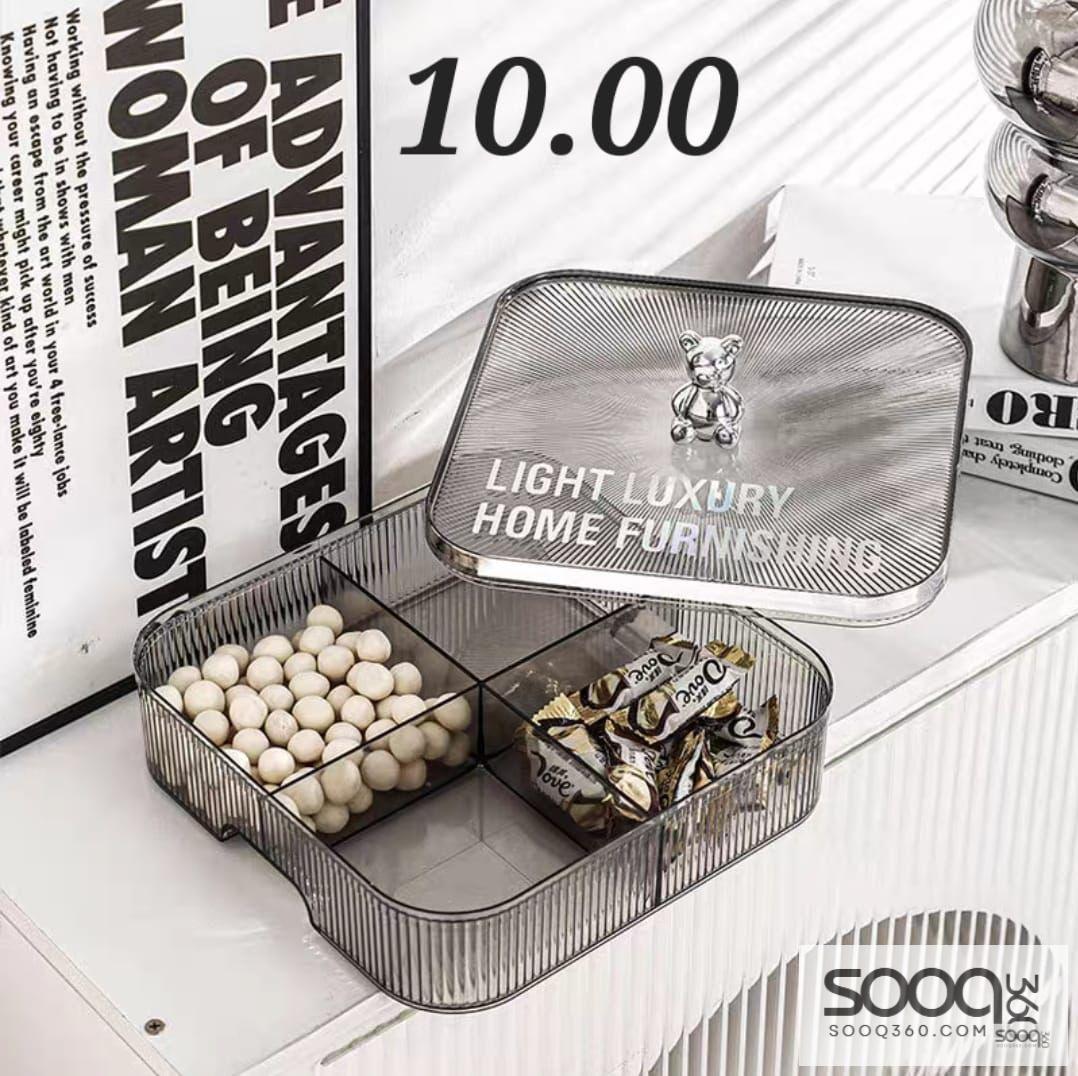 تصميم ذكي يوفر لك مساحة كبيرة لتقديم المكسرات، الحلويات، والشكولاتة بشكل منفصل ومرتب.