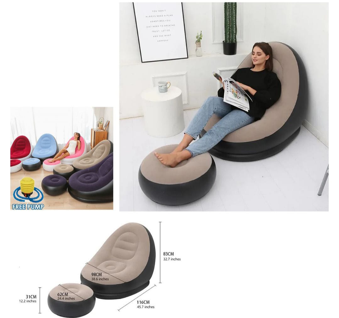 هل تبحث عن الراحة القصوى بعد يوم عمل طويل؟ نقدم لك طقم الكرسي الهوائي (Inflatable Lounge Chair) مع مسند القدمين، المصمم ليمنحك تجربة استرخاء لا تُضاهى.