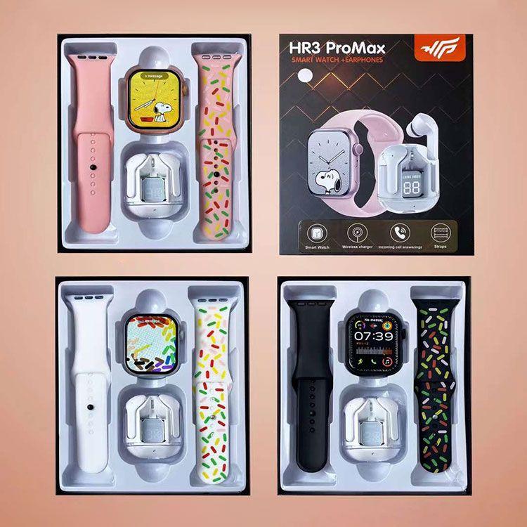 بكج هدية راقي ساعة سمارت مع سماعات اذن لاسلكية شحن متوفر عدة اللوان