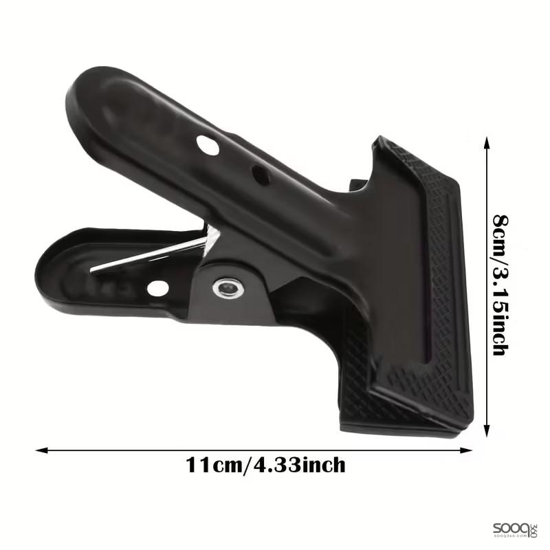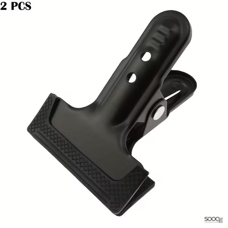 يحتوي المجموعة على 2 مشابك معدنية محملة بالزنبرك بأفواه واسعة توفر قبضة آمنة ويمكنها حمل مختلف العناصر بإحكام