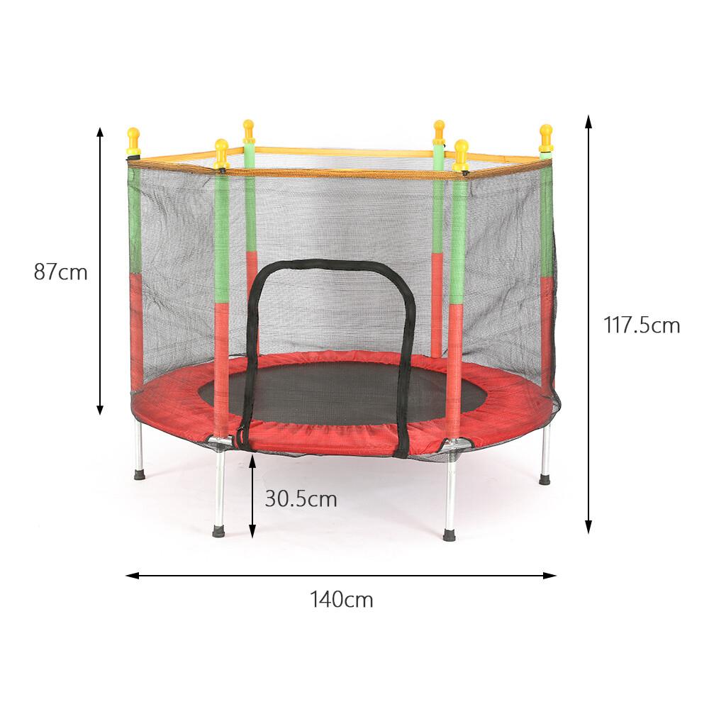 طاقة، حماس، ومرح لا ينتهي! 🤸♂️✨"أمان عالي: محاط بشبكة حماية متينة بارتفاع $87\text{cm}$ لضمان سلامة أطفالك أثناء اللعب.تصميم واسع: قطر $140\text{cm}$ يوفر مساحة كافية للقفز والحركة بحرية.هيكل قوي: مدعوم بقواعد متينة بارتفاع $30.5\text{cm}$ عن الأرض لتحمل الاستخدام المستمر.