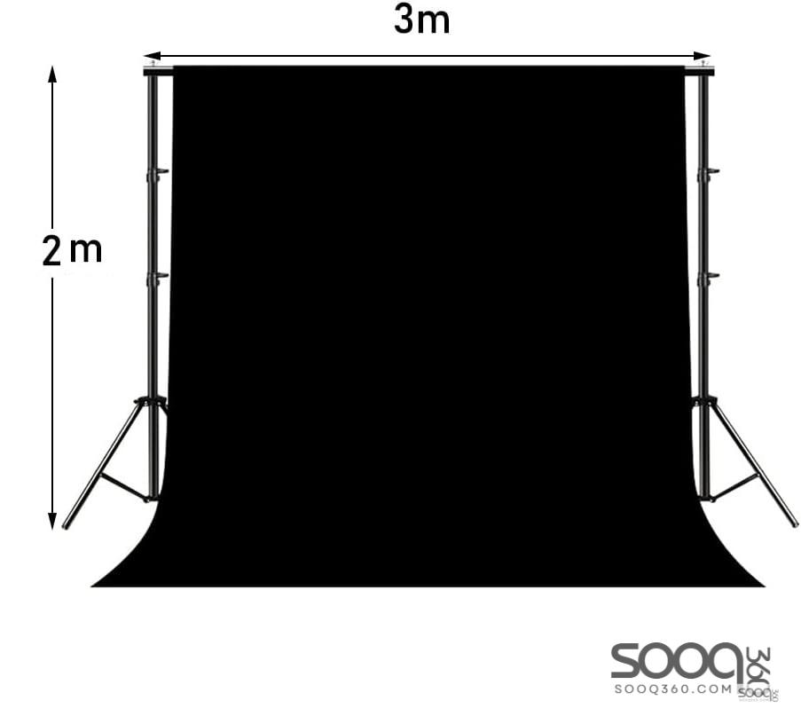 خلفية تصوير موسلن لون أسود مع استاند 2*3 متر مع حقيبة.