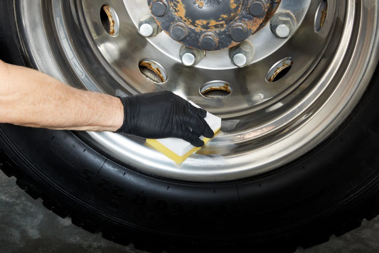 طلاء شديد اللمعان مع عملية طحن متوسطة لتجديد الأسطح المعدنية المشوهة مثل الألومنيوم أو النحاس أو الكروم أو الفولاذ المقاوم للصدأ.