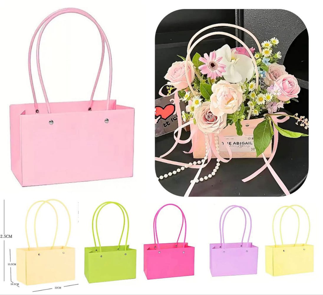 هديتك تحكي قصة أناقة!" أضف لمسة من السحر لزهورك وهداياك مع تشكيلتنا الملونة من الحقائب الورقية المبتكرة.