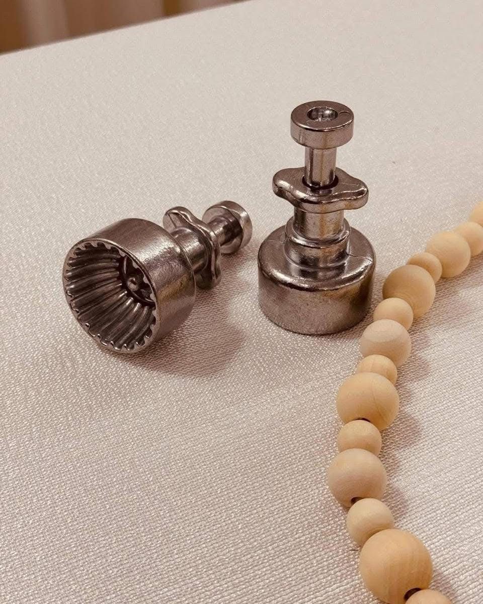 أبدعي في تحضير أشهى الحلويات والمعمول مع هذا القالب المعدني المتين. يتميز بتصميم "الكباس" العملي الذي يضمن لكِ نقشة دقيقة وواضحة في كل مرة وبأقل مجهود، مما يمنح حلوياتك مظهراً احترافياً ومرتباً. القالب مصنوع من مواد عالية الجودة تدوم طويلاً وسهلة الاستخدام والتنظيف.