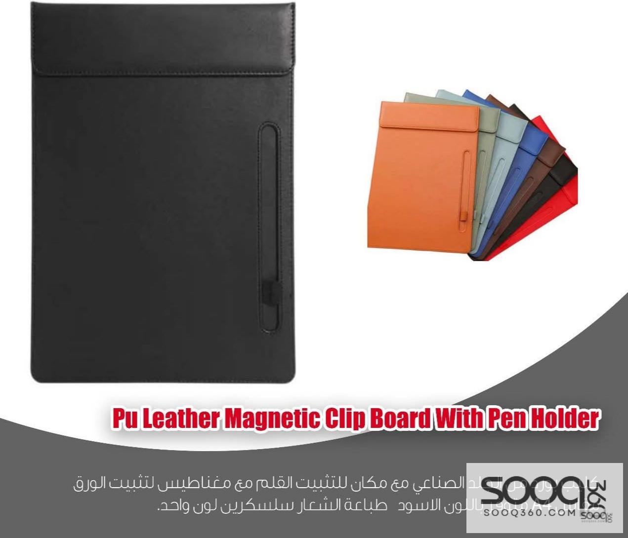 كليب بورد جلد صناعي مغناطيسي مع حامل قلم