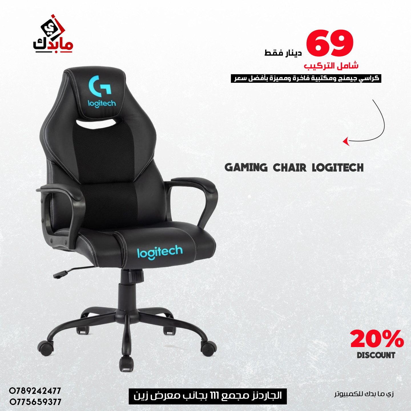 كرسي جيمنج (Logitech ) نوعية ممتازة مزود بمسند قدمين