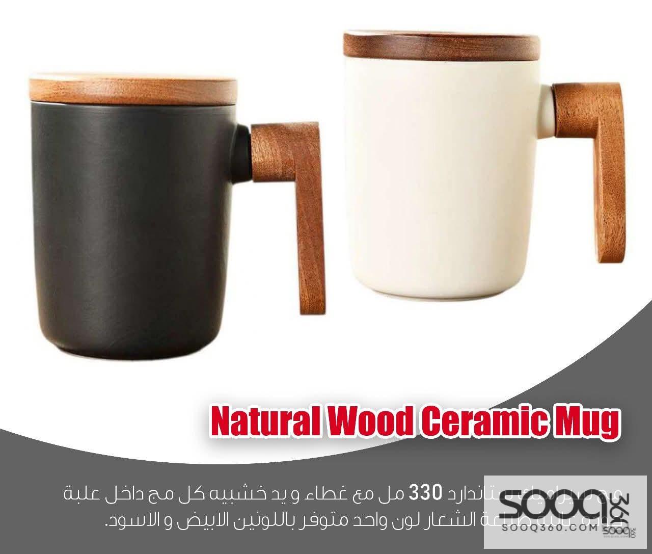 مج سيراميك بلمسة خشب طبيعية