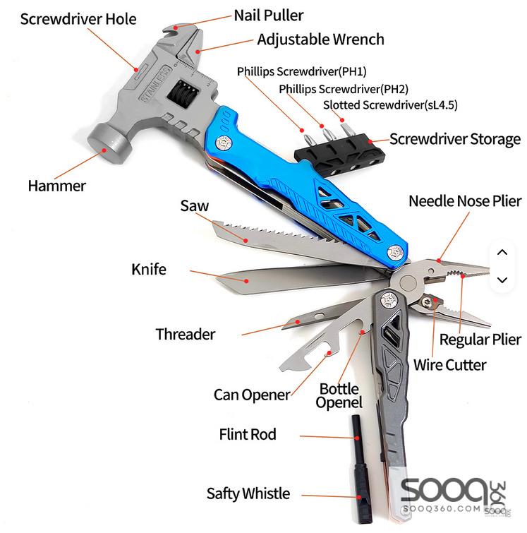 تخيل قوة المطرقة، دقة المفك، حدة السكين، وعملية المفتاح الإنجليزي.. كلهم في جيبك! 💎 خامة فولاذية (Stainless Steel) تعيش معك العمر كله.
