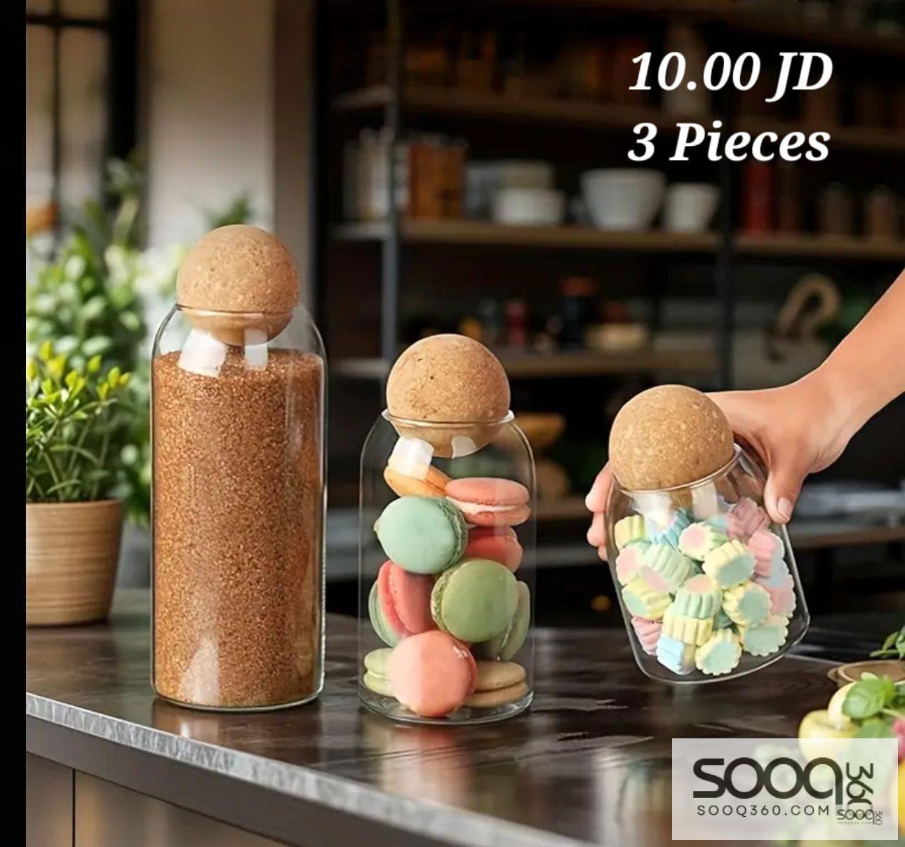 طقم البرطمانات الزجاجية المميز بغطاء "الفلين" الكروي.