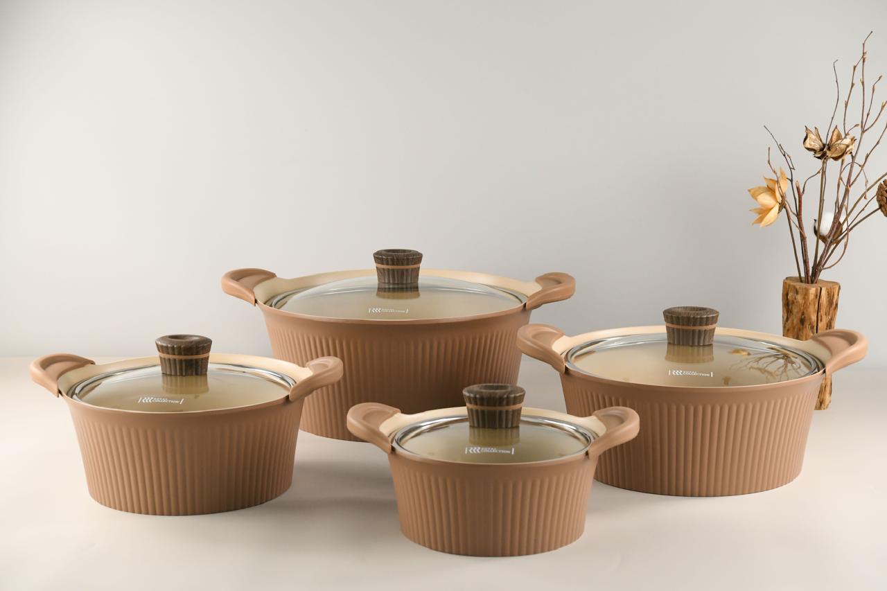 أضيفي لمسة من الفخامة والتميز لمطبخك مع طقم القدور الحصري من "رويال كوليكشن". يتميز هذا الطقم بتصميمه المخطط الأنيق ولونه العصري الجذاب، مما يجعله قطعة فنية على مائدتك. القدور مصنوعة من الجرانيت عالي الجودة المقاوم للالتصاق لضمان طهي صحي بأقل كمية من الزيوت وسهولة تامة في التنظيف. يأتي الطقم مع أغطية زجاجية شفافة ومقاومة للحرارة تتيح لكِ متابعة نضج الطعام بوضوح، مع مقابض مصممة لتوفر لكِ الراحة والأمان أثناء الاستخدام.