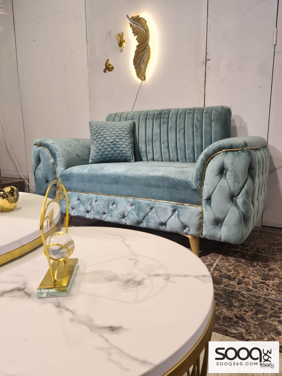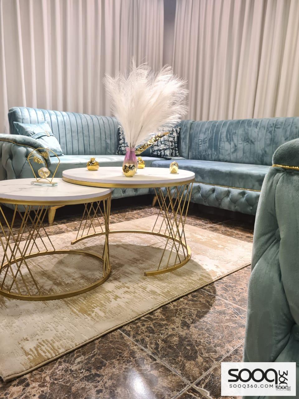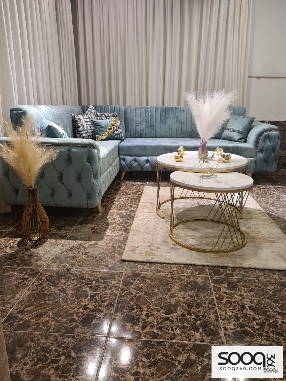 طقم كورنر ستايل تركي 9مقاعد خشب لاتيه وسويد و قماشة لينون تركي تركواز