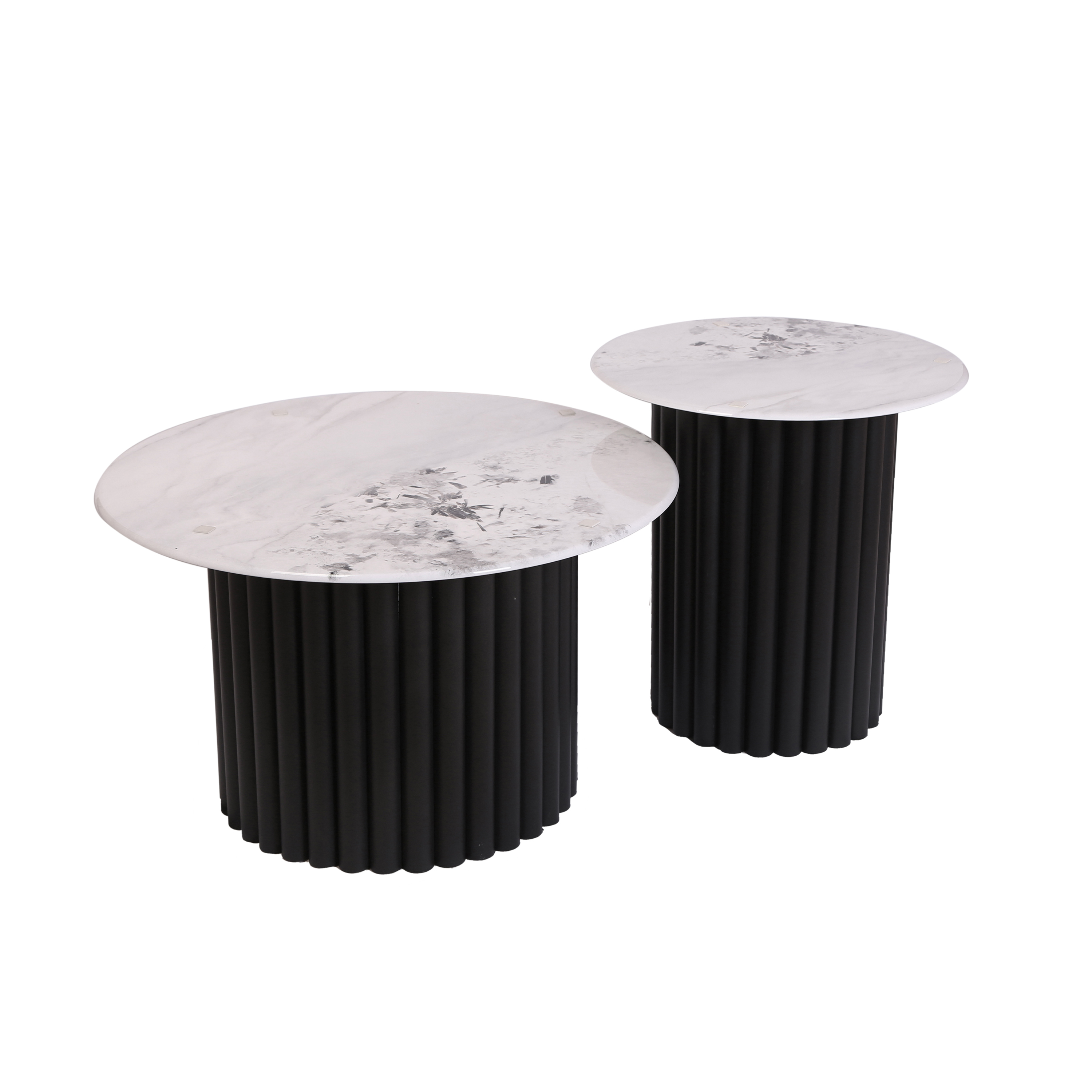 طقم طاولة وسط قطعتين رخام صناعي ابيض 70x70 + 50x50 قاعدة معدنيه معالجه بصبغ حراري