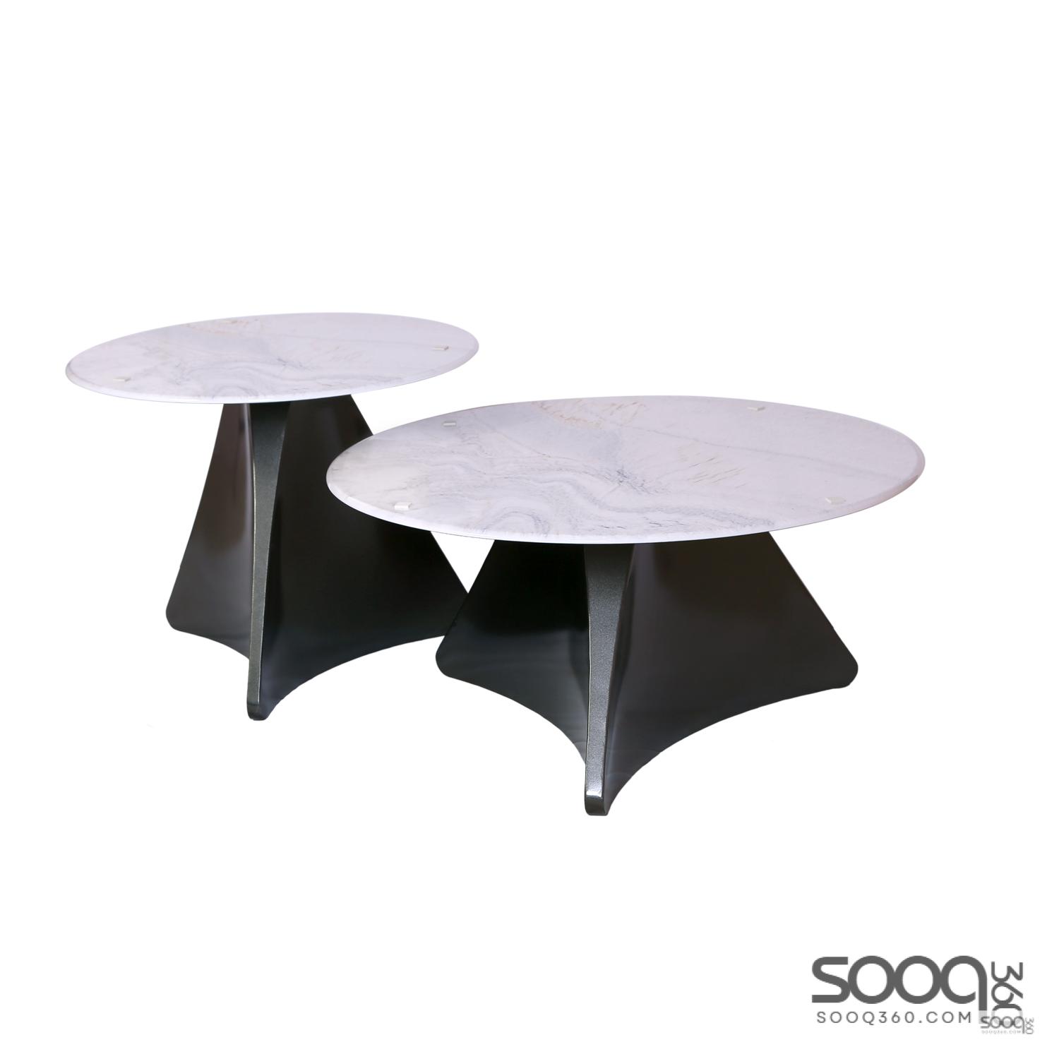 طقم طاولة وسط قطعتين رخام صناعي ابيض 80x80 + 50x50 قاعدة معدنيه معالجه بصبغ حراري
