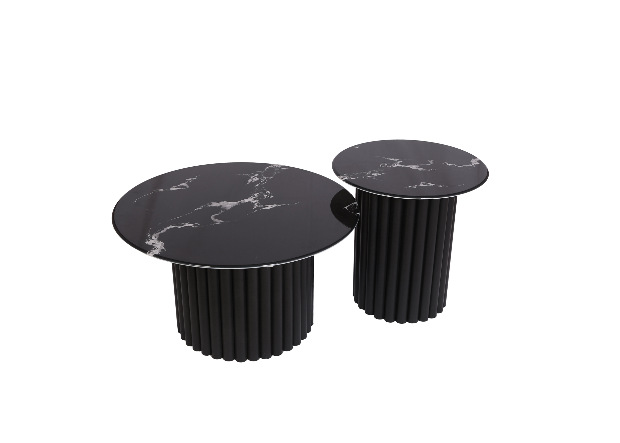 طقم طاولة وسط قطعتين رخام صناعي اسود 70x70 + 50x50 قاعدة معدنيه معالجه بصبغ حراري