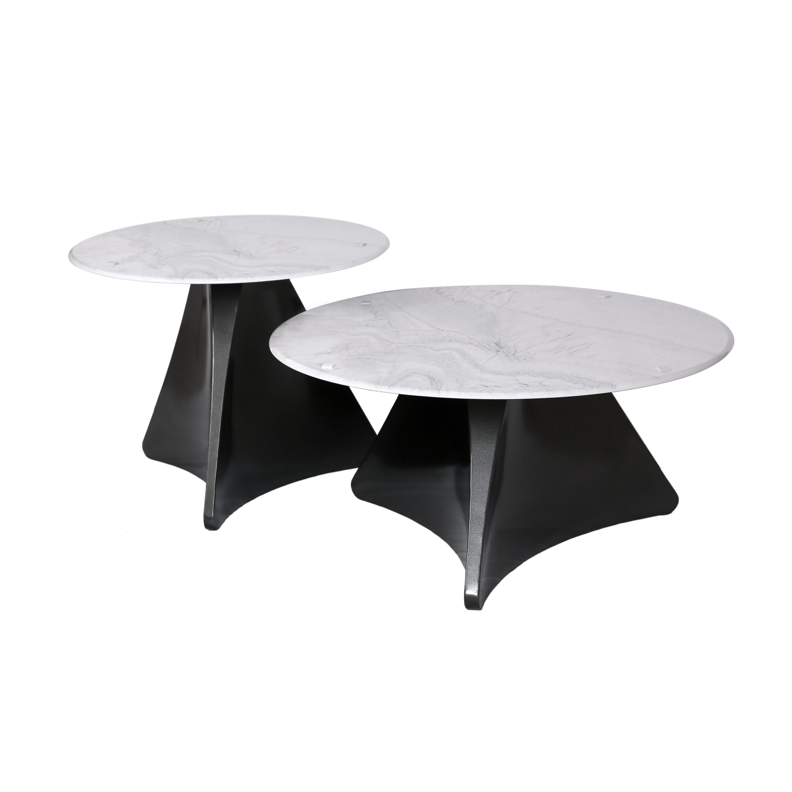 طقم طاولة وسط قطعتين رخام صناعي رمادي 80x80 + 50x50 قاعدة معدنيه معالجه بصبغ حراري