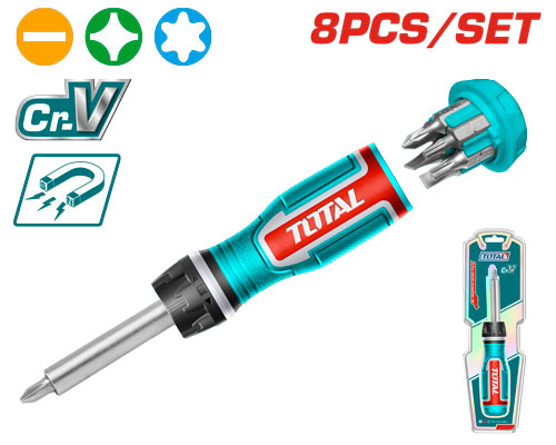 TOTAL TACSD30086 8Pcs ratchet screwdriver set مفك طرطيقة 8 قطع