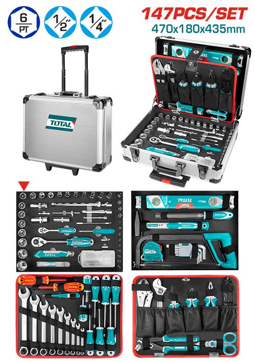 Total THKTHP21476 صندوق عدة كامل شنطة المنيوم مع عجال 147 قطعة