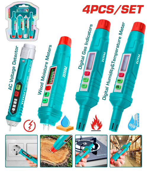 Total TOS23033 طقم أجهزة فحص للحرارة والرطوبة والغاز رطوبة الخشب والكهرباء
