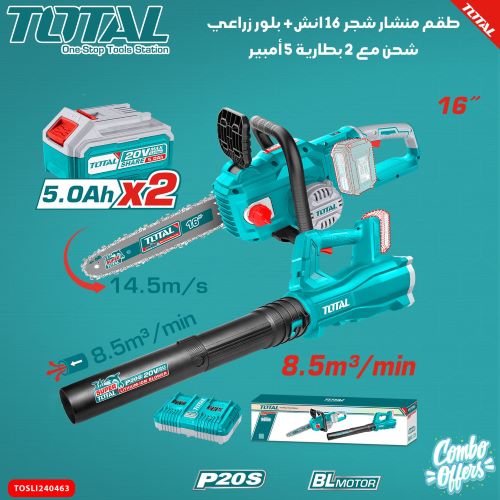Total TOSLI240463 طقم منشار شجر 16 انش + بلور زراعي شحن مع 2 بطارية 5أمبير