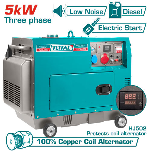 Total TP2500032 مولد كهرباء 3 فاز صامت ديزل 5 كيلو واط