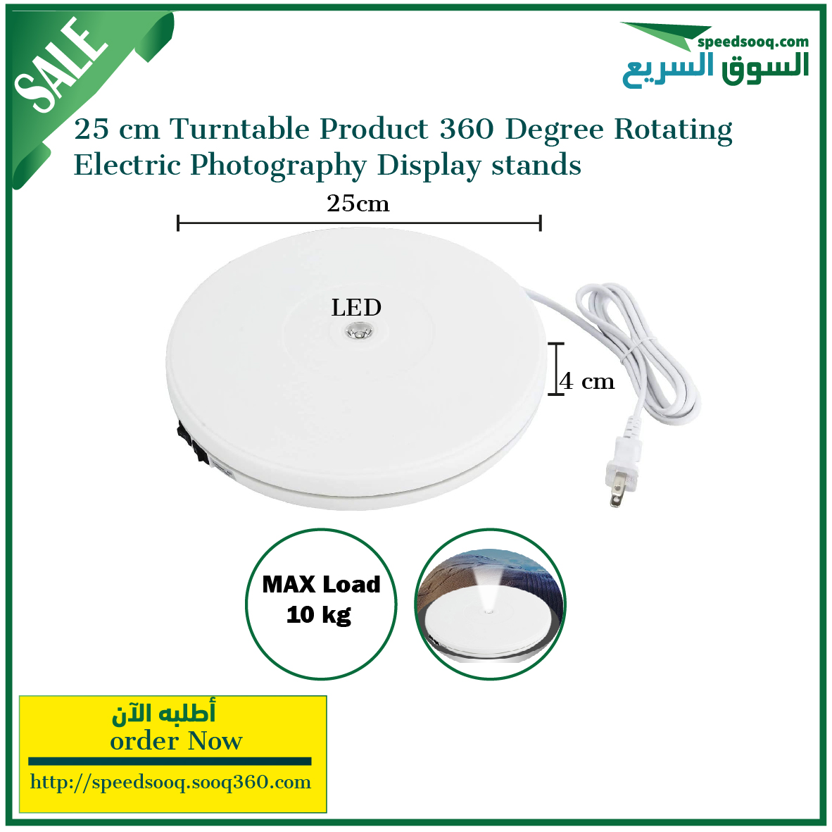 تيرن تيبل لون ابيض قياس 25سم مع ضوء ليد white Electric Rotating Turntable Display with LED,25cm Diameter